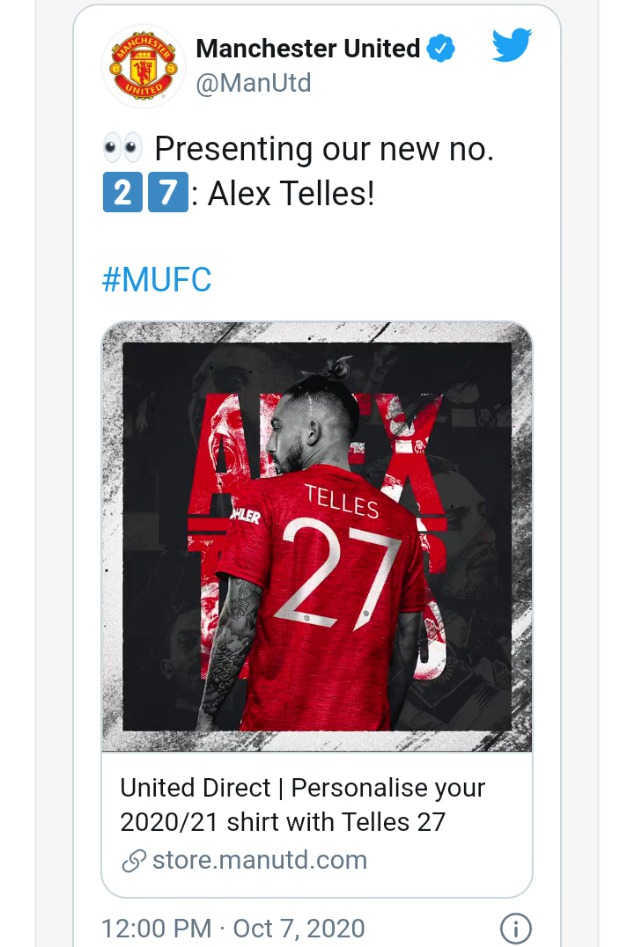 Alex Telles Shirt Number The Three Options For Full Back As Man Utd Complete Transfer Football Sport Express Co Uk , Tuy Nhiên, Phải Đến Ngày Áp Chót Của Kỳ Chuyển Nhượng, Thương Vụ Này Mới Được Hoàn Tất.